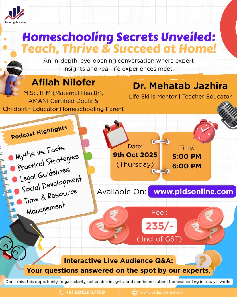 Are you a parent exploring homeschooling or already navigating the home education journey? Discover expert insights, real-life experiences, and powerful strategies in our exclusive live session: “Homeschooling Secrets Unveiled: Teach, Thrive & Succeed at Home!”
